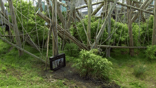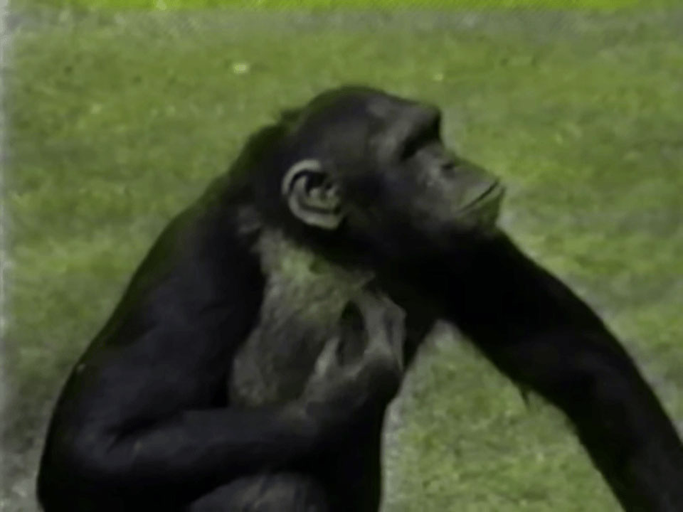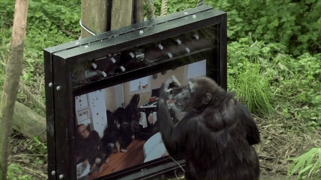 Primate Cinema: Apes as Family is a drama made expressly for chimpanzees â and the chimps' reaction to its screening at the Edinburgh Zoo. Chimpanzees watch television as a form of enrichment in captivity. But no filmmaker had made a film for a specifically ape audience. Commissioned by Arts Catalyst, and supported with an art-science grant from the Wellcome Trust, the director, in consultation with primatologists, researched chimpanzees' reactions to a variety of television genres â Teletubbies, wildlife films, human actors playing chimp behavior, kettle drums, chimpanzee display behavior. Chimps seem to like to watch the same things as human primates â dramas around food, territory, social status, and sex.